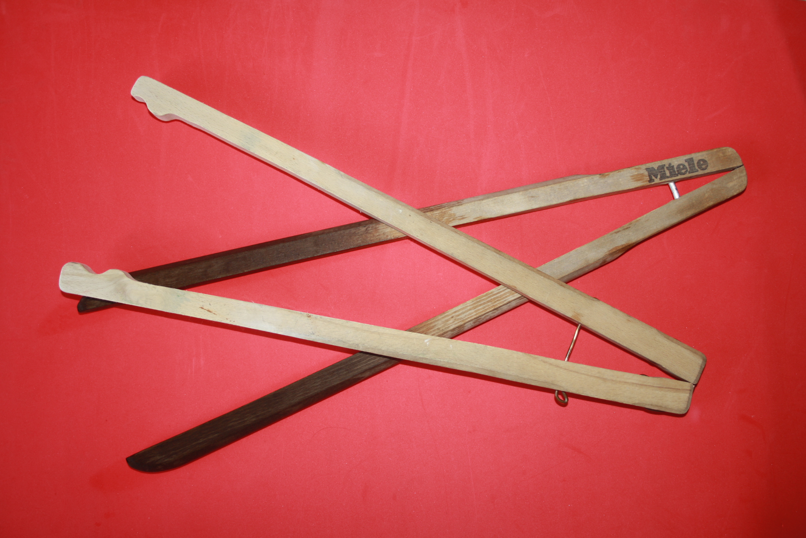Zum Rühren, Wenden und Raus holen nutze ich hier gerne diese Holzzangen. Früher im Waschbottich genutzt, heute für kleines Geld von Trödel besorgt.