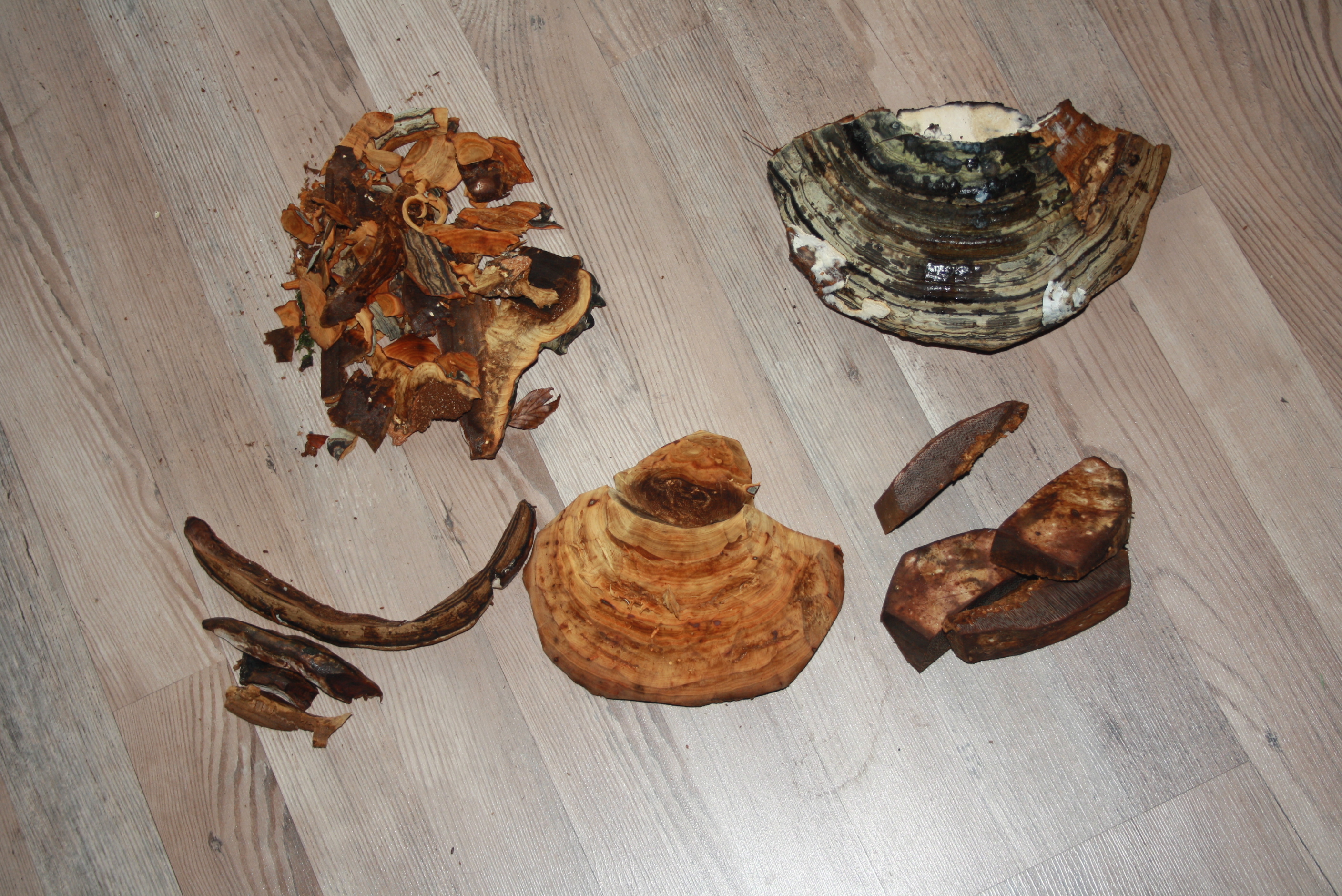 Dabei habe ich mir, da mein Zunder langsam zur Neige ging, neue Pilze mitgenommen. Hier zuhause habe ich dann bei 10 Pilzen die Rinde abgeschnitten und dann das Trama von der Röhrenschicht gelöst. Fast wie ein Metzger mit den Filets vom Rind schneidet.